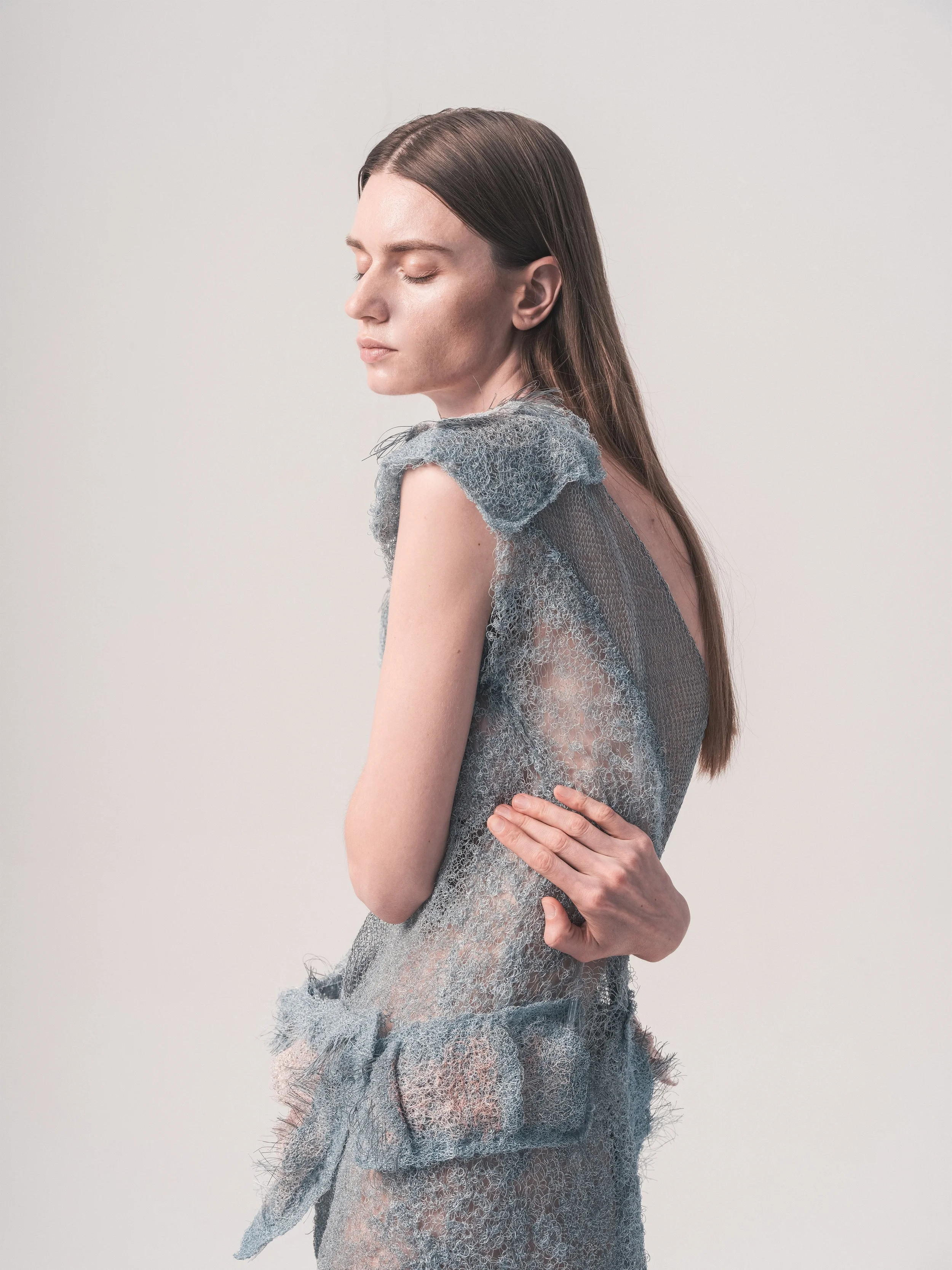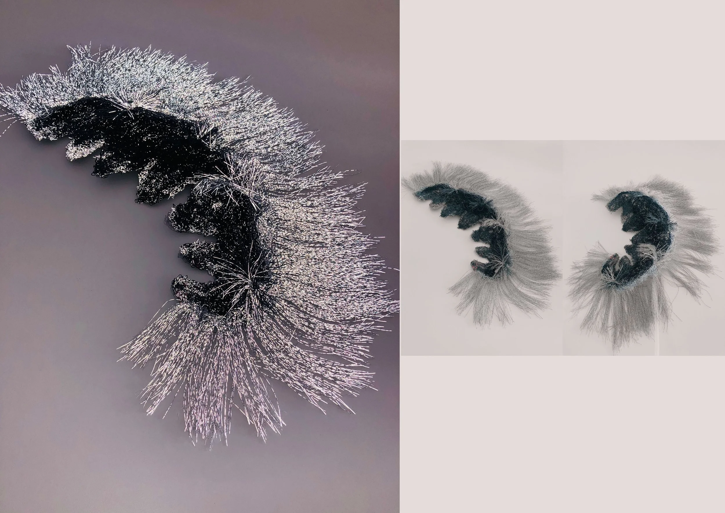 Inspired by biomimicry, she used it as a strategy to recreate the physical sensation of hugging through moving inflatable textile structures. The prototypes are designed with different structures to move, expand and display different effects when ambient light changes. The HUG ME system is wearable, acting as a reminder of a sense of care for people - delivering a vital sense of touch or the sensation of a hug.